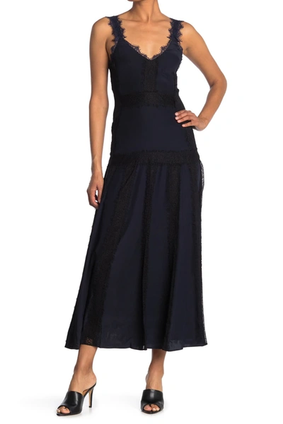 La Ligne Lace Inset Sleeveless Silk Maxi Dress In Navy Modesens
